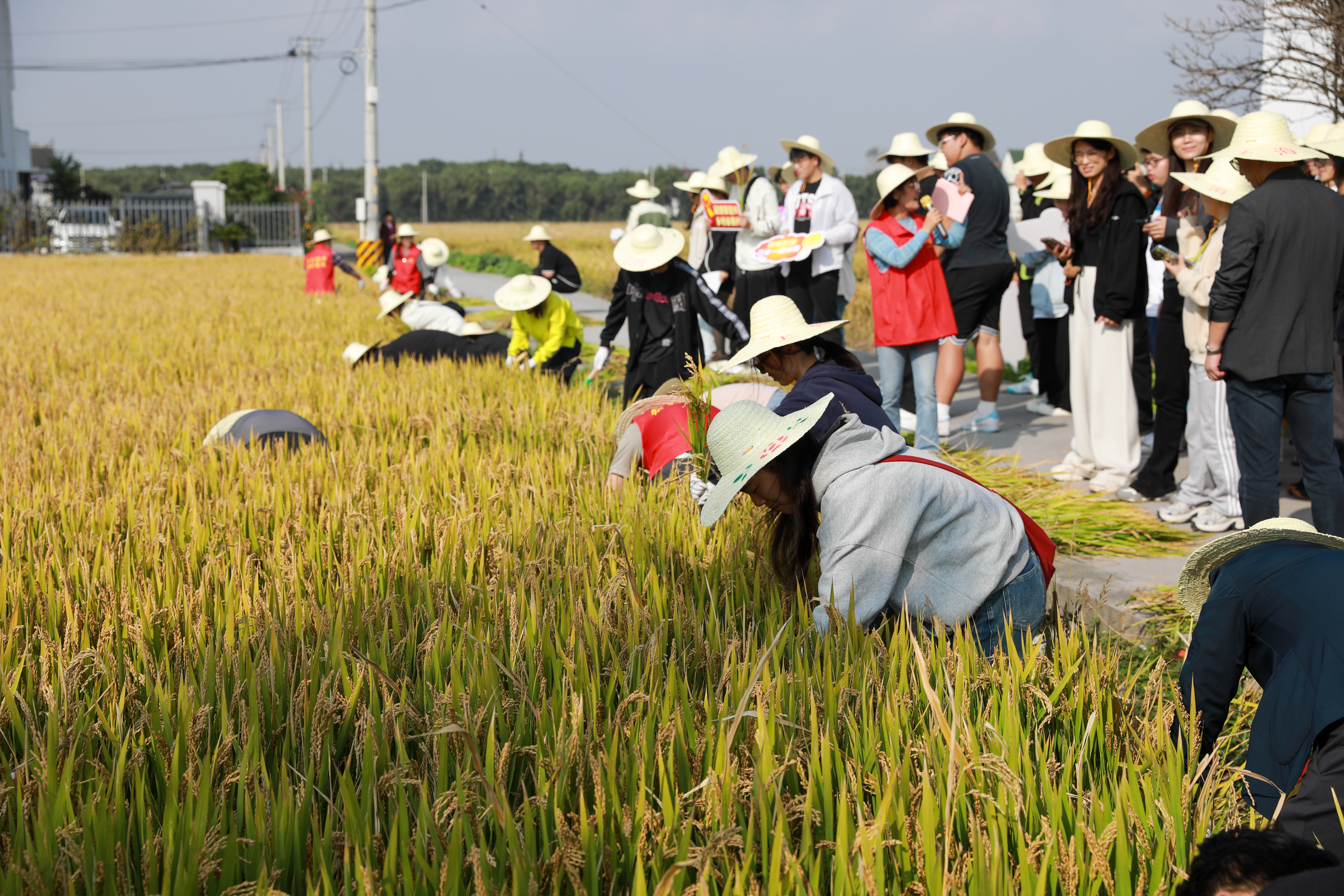 习近平总书记指出:“‘大思政课’我们要善用之,一定要跟现实结合起来。”习近平总书记的重要论述,为上好“大思政课”提供了根本遵循。11月13日,在金山区张堰镇秦阳村里,来自中侨大学智能制造学院的00后大学生们,他们观农耕、割水稻,拍视频、发自媒体平台,一堂理论与实践相结合的青春思政课正在田间地头开展,而这种大学生思政课新的“打开方式”迅速引起了学生的共鸣!
