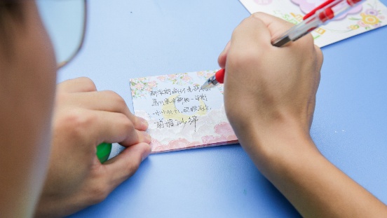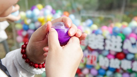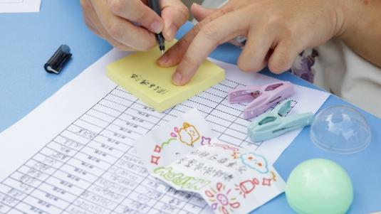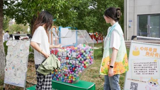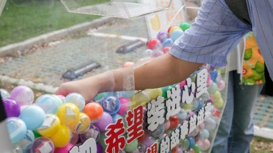 心理中心门口的心型装置里装满了惊喜——提前备好的扭蛋里,藏着同学们与心理中心的新学期祝福。有人抽到“愿你在大学找到热爱的方向”,嘴角不自觉上扬;也有人认真写下:“新学期新环境,愿大家在新的一学期,开开心心,天天向上,前程似锦。”,将自己的心意塞进扭蛋,为下一位参与者留下全新的祝福。一抽一放,温暖在同学之间流动。