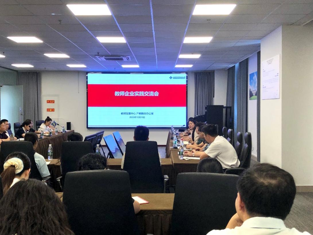 教师企业实践是职业学校和企业双向沟通的纽带,也是促进教师学习成长的重要环节。为进一步落实2025年度教师企业实践计划,促进职业教育“双师型”队伍建设,教师发展中心、产教融合办公室于2025年10月10日上午组织召开了2025年教师企业实践交流会。各学院分管院长、专业主任、教师代表以及人事处、教师发展中心、产教融合办公室等40余人参加会议。会上,吴酉芝副校长,教师发展中心朱伟文,产教融合办公室魏鹏作了专题报告。艺术学院吴东影、智能制造学院蒋荟、食品药品学院张翰琛等三位教师代表发言,人事处管春英作了会议交流发言。会议由戴红梅副校长主持。