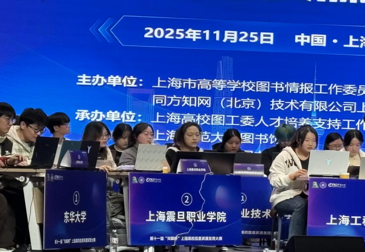 本届大赛初赛于 2025 年 11 月 10 日圆满落幕,经层层选拔,15 所高校的代表队成功晋级决赛。决赛设有 “初露锋芒”(团队必答题)、“眼疾手快”(团队抢答题)、“险象环生”(团队风险题)及附加题四个环节。在激烈角逐中,我校代表队沉着应战、从容发挥,充分展现了三位选手出色的信息检索能力与默契的团队协作能力!